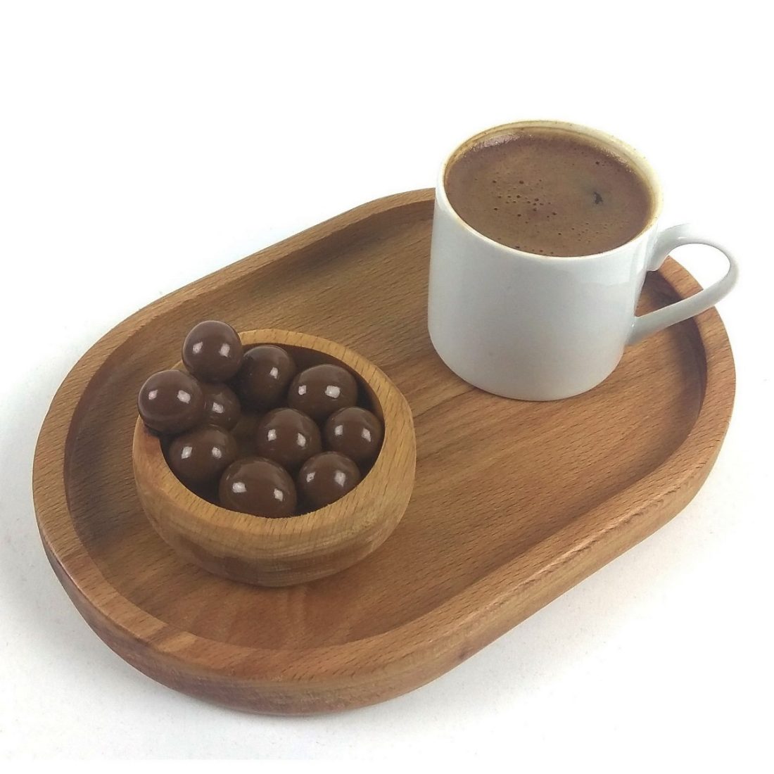Kuvarz Wooden Tea Coffee Serving Plate Oval 19x13cm