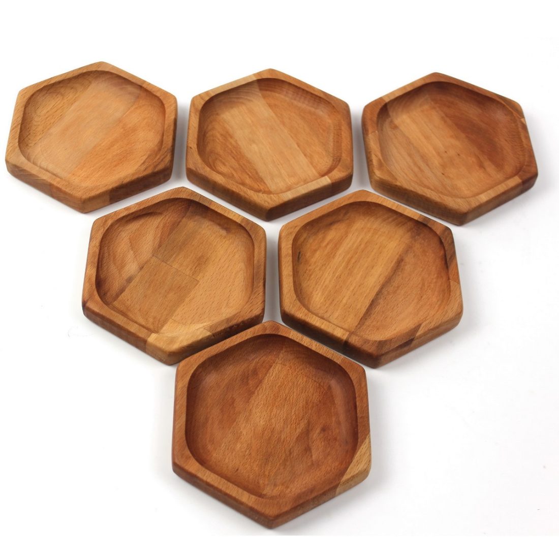 Kuvarz Ahşap Altıgen Sunum Tabağı 13x12cm