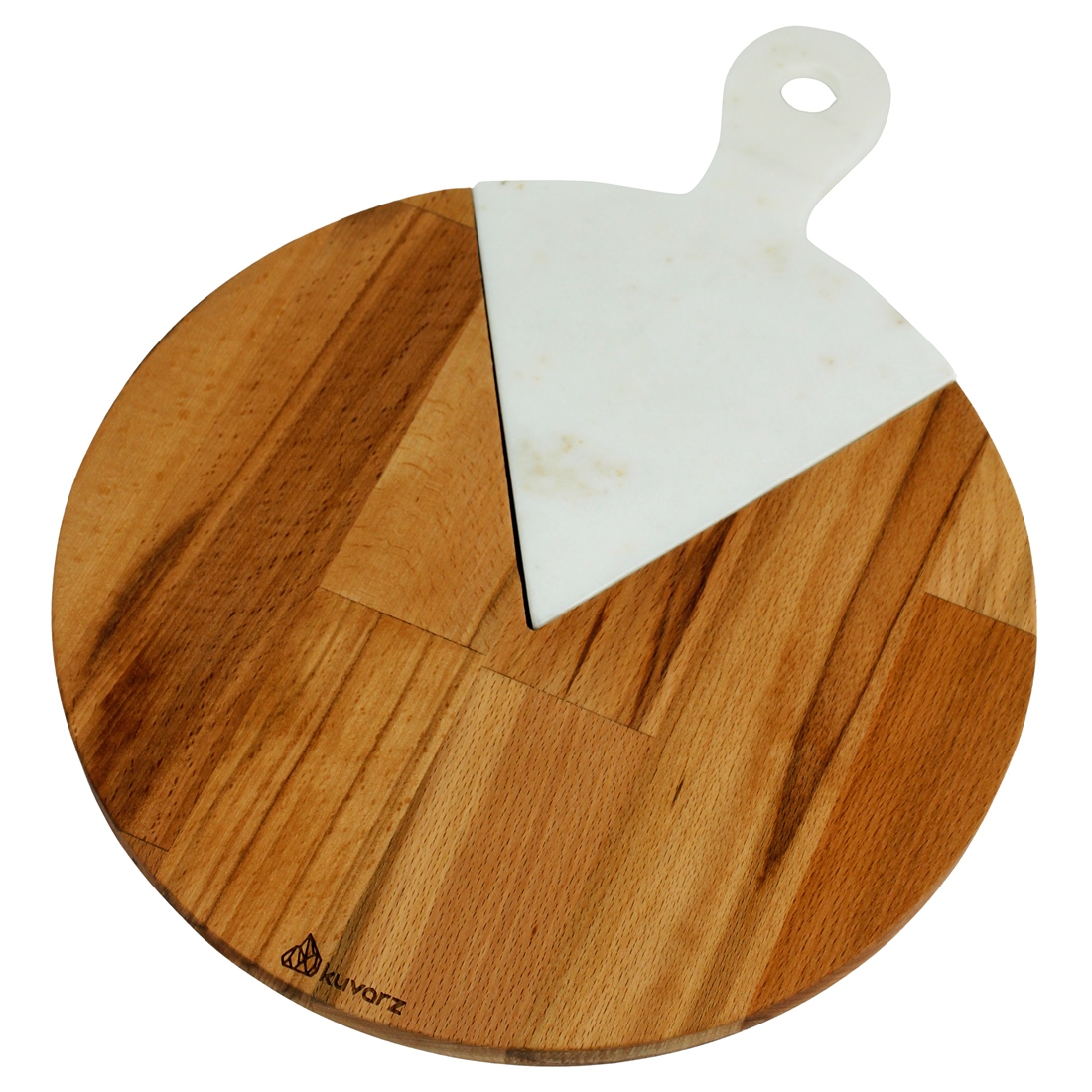 Kuvarz Dilim Ahşap ve Mermer Pizza Sunumu Kayın 33cm